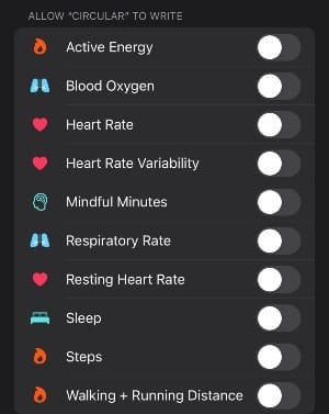 In terms of connectivity, the Circular is friends with both iOS Health and Google Fit, allowing you to record these metrics: