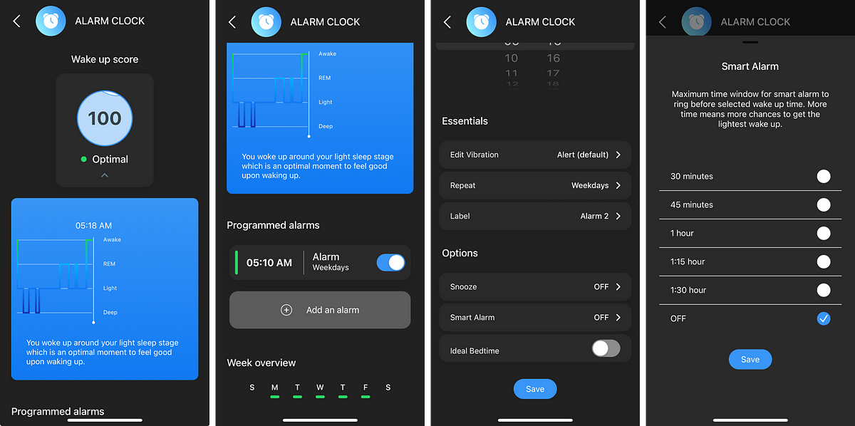 I criticised the accuracy of the sleep stage detection above, but ironically the Smart Alarm feature was quite good. For the most part, it kept me vibrating somewhere between light sleep and wakefulness.