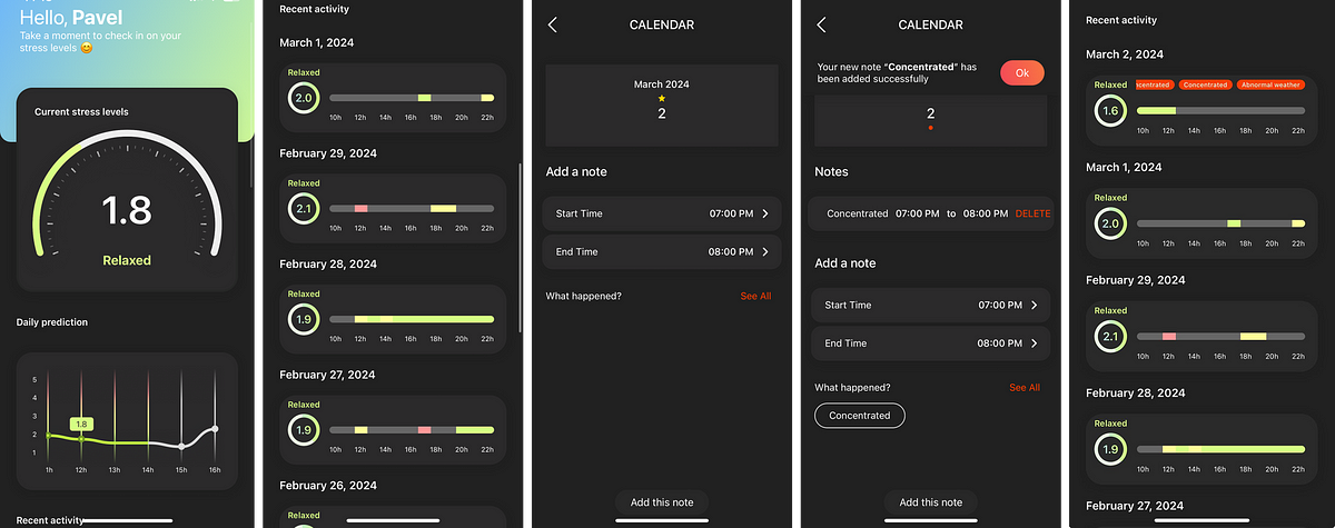 Circular also tries to predict the stress level for the next few hours based on previously measured data.