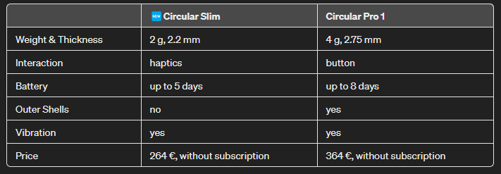I have had the opportunity to assess the progress and evolution from Circular PRO (one of the earlier versions) to Circular Slim, and the progress is noticeable. The ring has undergone a decent slimming down, but it must be added that this is at the expense of battery life. Additionally, the craftsmanship has improved, and the charging pins have been reduced in size, making the Circular Slim definitely more comfortable to wear than my previous version.