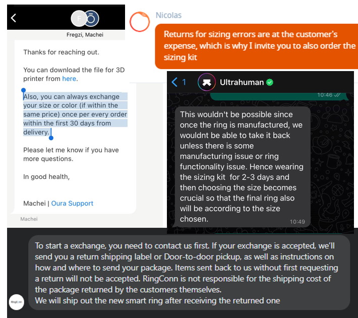 - RingConn- exchange is possible, and shipping is paid by the customer.