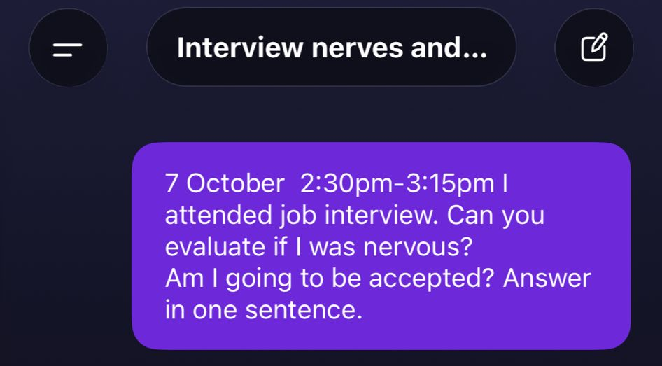 I arrived at the interview wearing my wearables – Garmin, Whoop, Oura, and the AI pendant Limitless. All detected stress, each differently. The highest peak? Garmin: 99/100 right in the middle of the talk. Which one told the truth? And what does the LLM say?